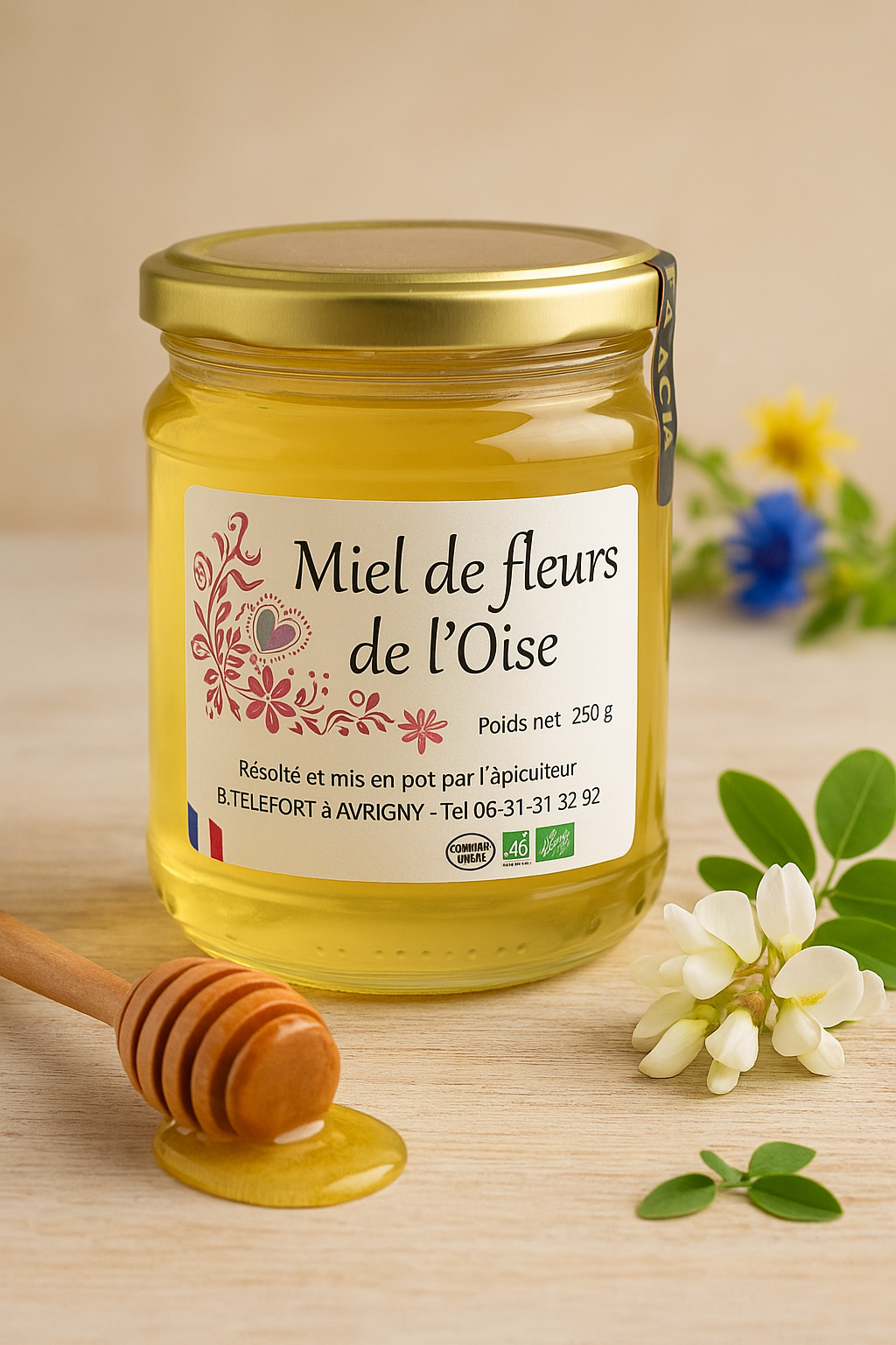 Installée à Avrigny, Barbara récolte et met en pot son miel avec passion. Chaque pot de Barbara’s Honey reflète la richesse naturelle des fleurs de l’Oise.
